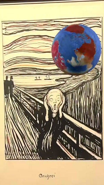 Edvard Munch’s oil painting "The Scream" is world-famous. In our composition, we augmented one of his watercolor lithographs by the Climate Sphere.